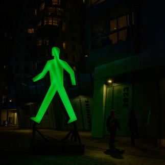 Below you will see my photos of how these pieces look like in situ. I used my mirrorless camera, a Nikon Z6, 24-70mm, f.4, to shoot the photos below. Because of the low light conditions, I decided to shoot on Aperture Priority, which means that my ISO was really high, which in turn means that my photos look very grainy, some may even say noisy. I have zero issues with this. I also had a bit of a play with the processing of these: some are in colour and others in black and white...and there is one that has both (that's what masks are for, I guess). This is my sandbox, and I love to experiment with my processing in Adobe Lightroom. Anyway, there will be no more winded text from me. You can check the photos for each light art installation below. Be aware that if there is an arrow on the right of the photo, it means that there is a slide show [and the best way to see it, and honestly to see all the photos, is to click on the images themselves!]. Also, there is a little video at the end with a 365º view from point 2.